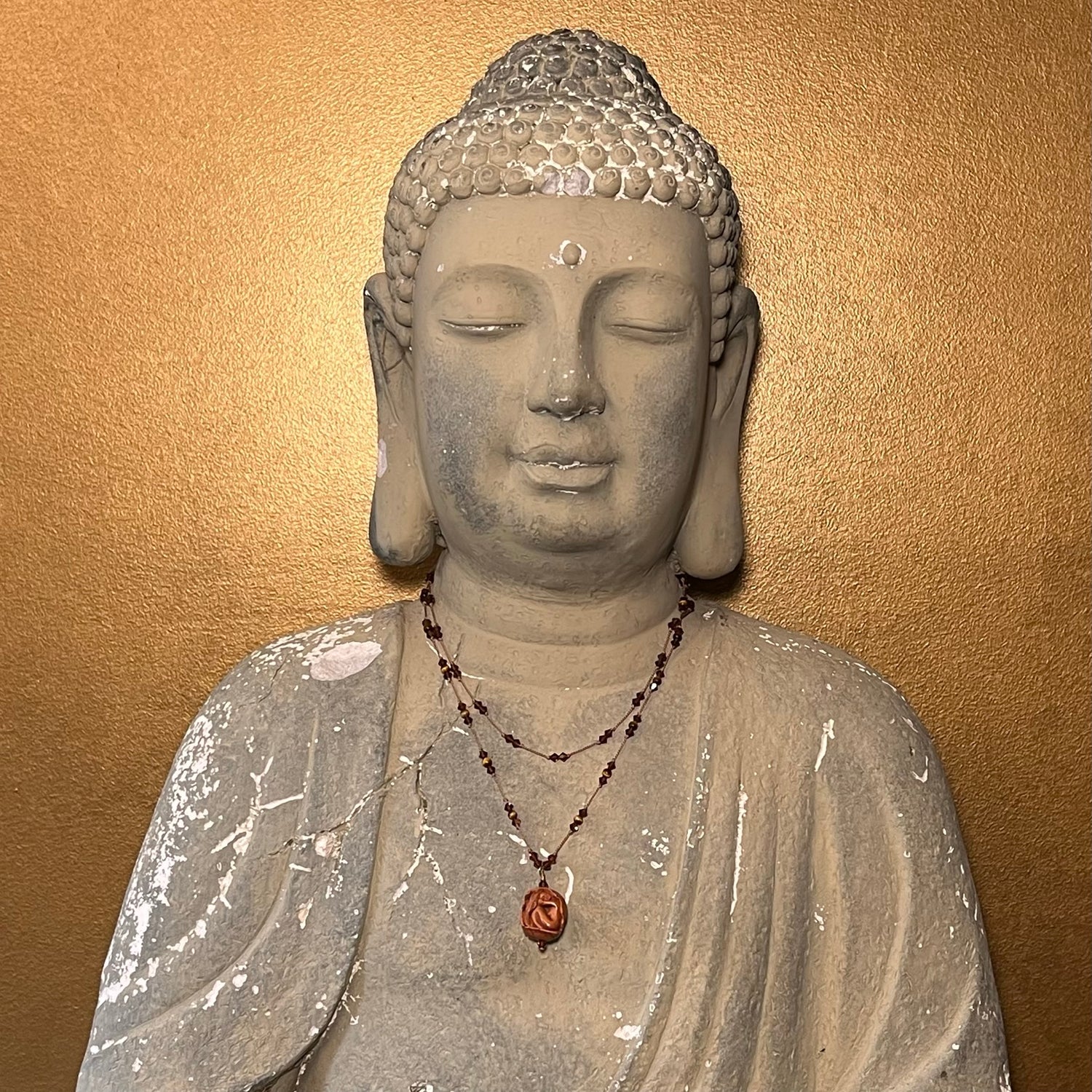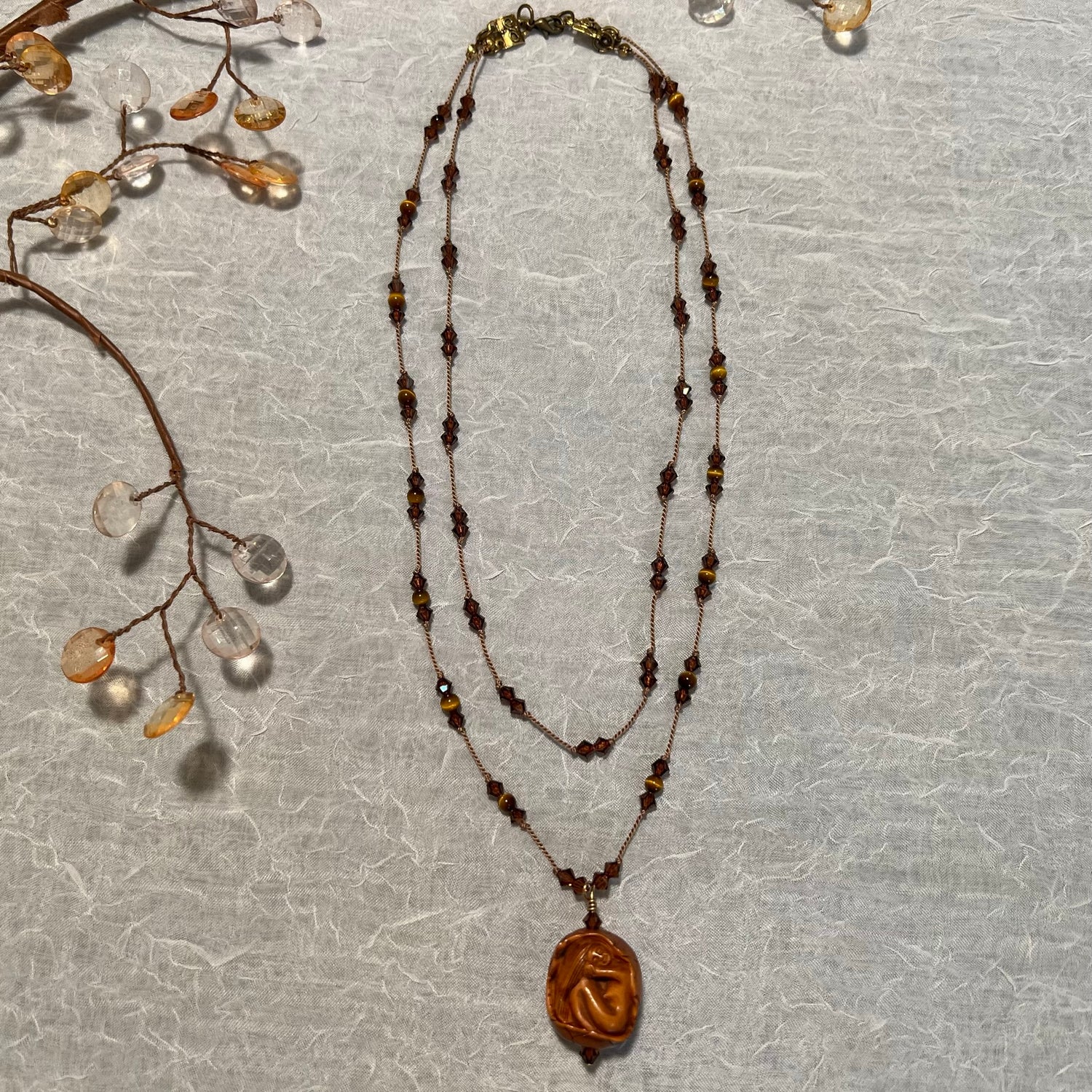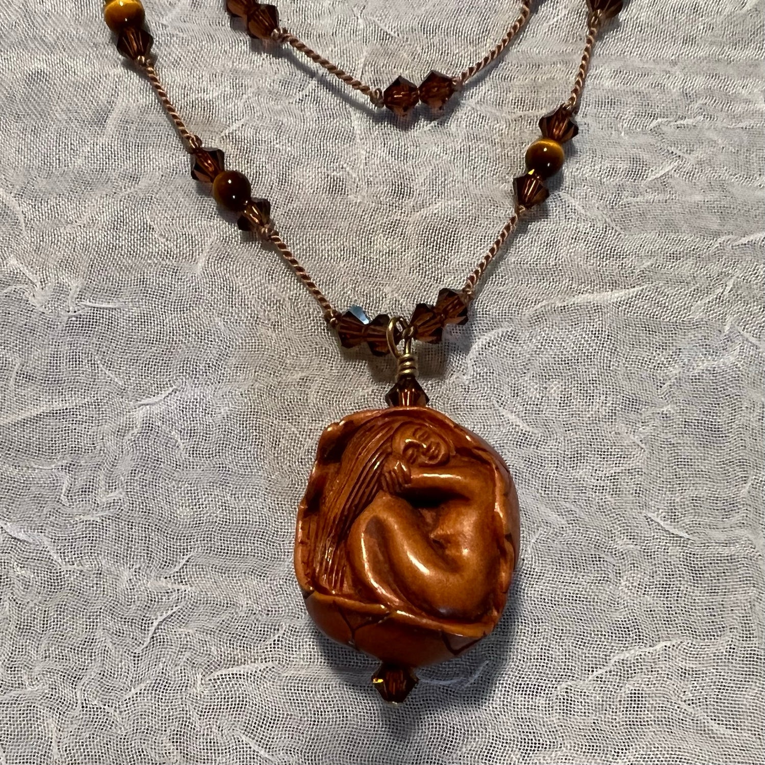 - Tibetan hand carved, boxwood carving of Blissful woman in cocoon