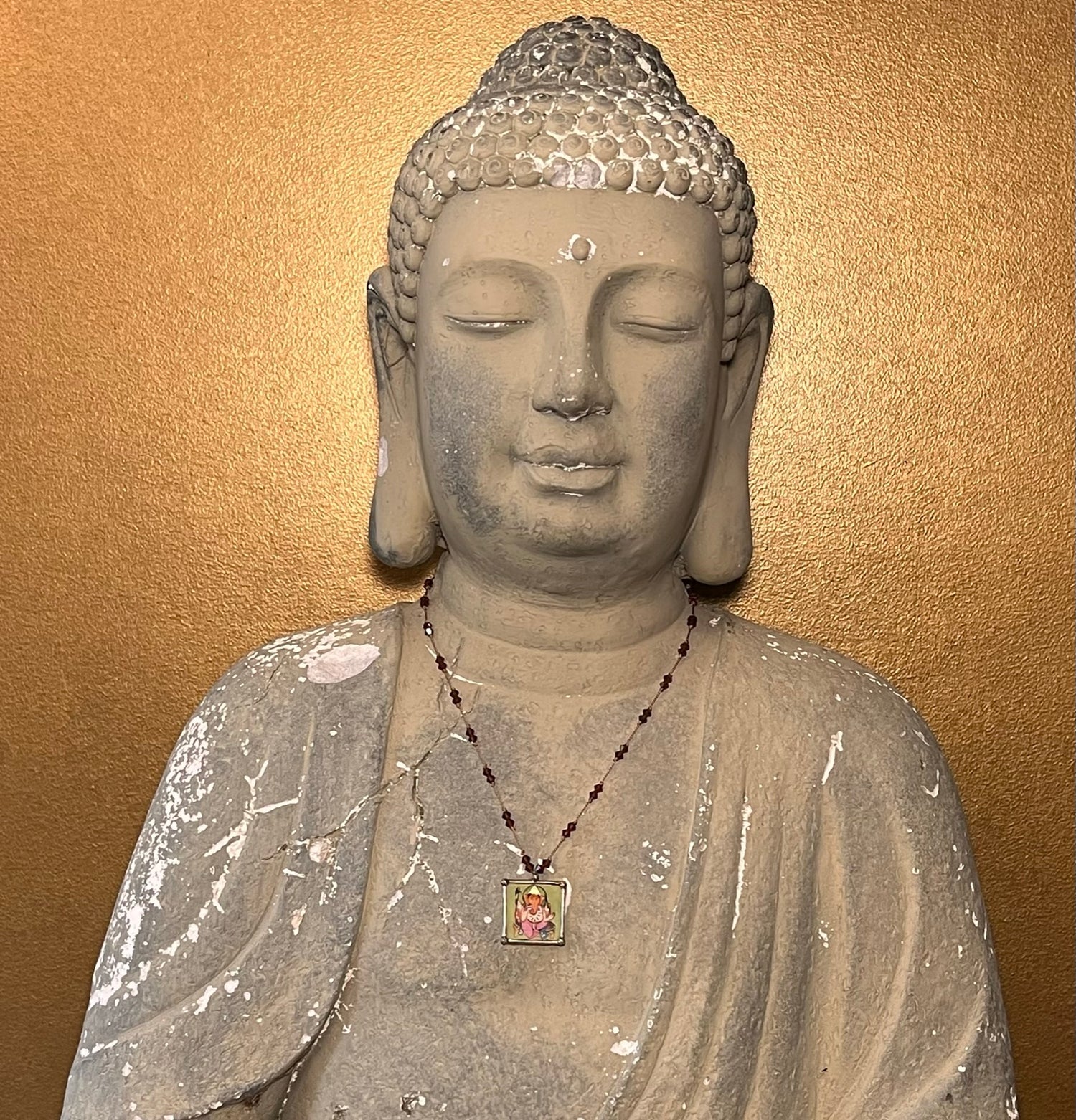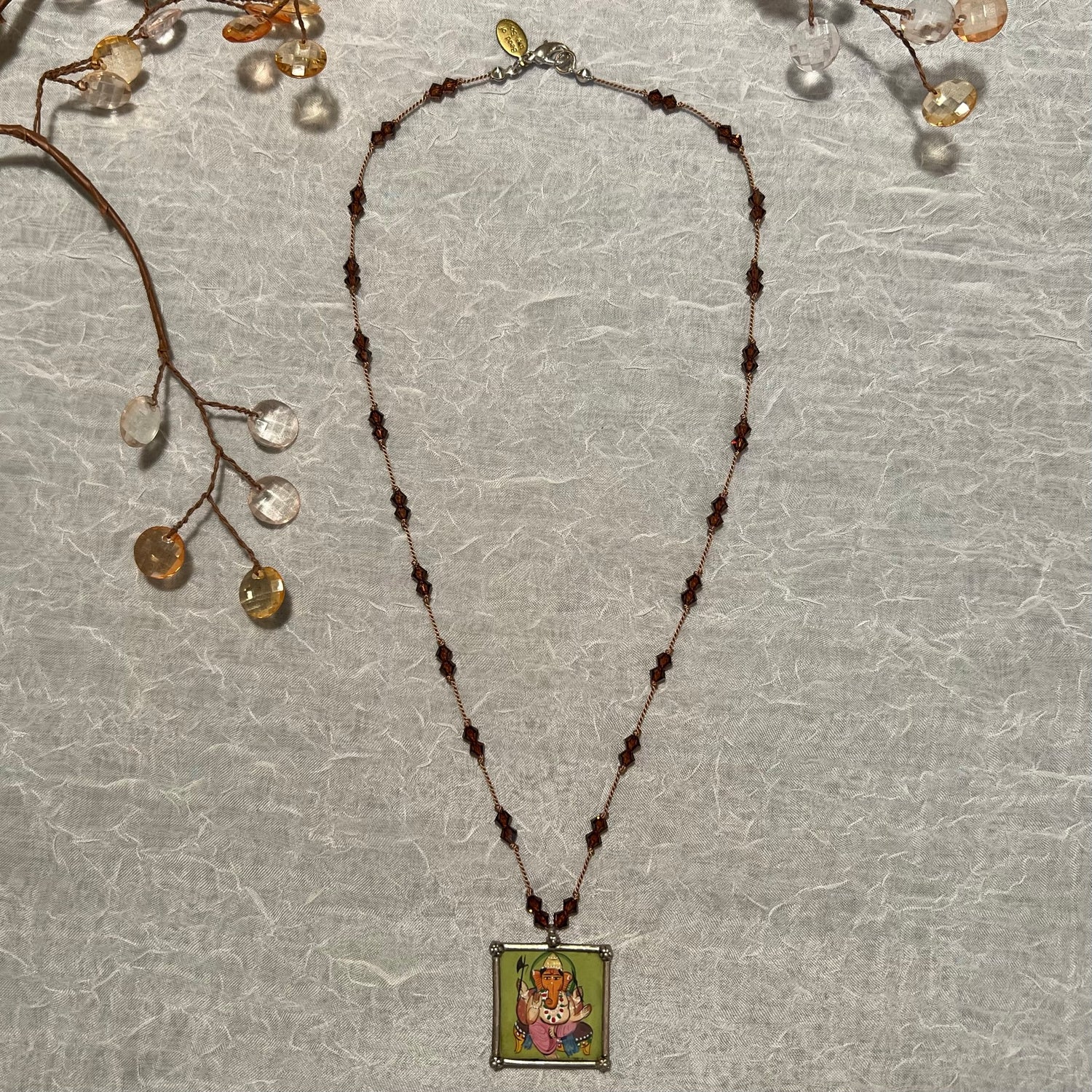 - Hand painted Ganesha pendant in sterling silver frame