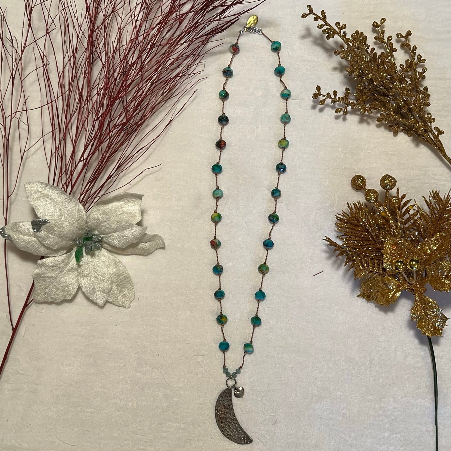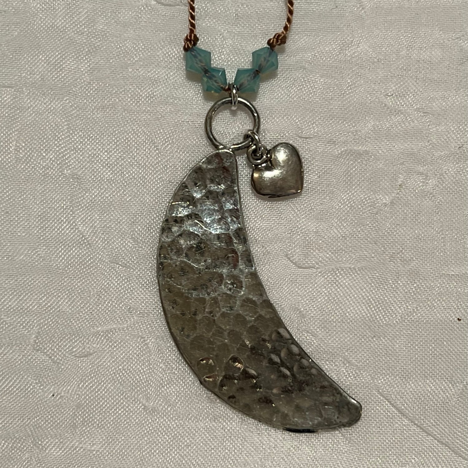 - Tibetan silver hammered moon pendant with silver heart